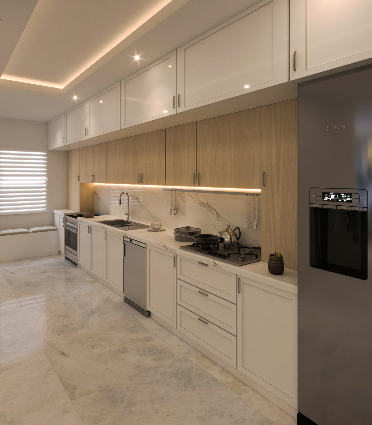 در این پروژه، رویکرد اصلی ایجاد فضایی ساده، روشن و کارآمد بر پایه اصول طراحی مدرن بود. طراحی با تأکید بر خطوط صاف، حجمهای مدرن و حذف عناصر زائد شکل گرفت تا محیطی یکپارچه و آرام ایجاد شود. انتخاب متریالها با تمرکز بر سطوح خنثی، بافتهای طبیعی و جزئیات دقیق انجام شد تا علاوه بر ایجاد حس نظم و پاکیزگی، گرمای ملایمی نیز در فضا برقرار باشد. چیدمان پلان بهگونهای بازتعریف شد که ارتباط بصری و عملکردی میان فضاهای نشیمن، آشپزخانه و پذیرایی و قسمتهای خصوصی خانه تقویت شود. استفاده از نور طبیعی در کنار نورپردازی لایهای، کیفیت فضایی را ارتقا داده و عمق بیشتری به محیط بخشیده است. مبلمان با فرمهای ساده و رنگهای هماهنگ انتخاب شد تا در عین راحتی، هویت مدرن فضا را برجسته کند. نتیجهی نهایی، خلق فضایی است معاصر، دلنشین و پویا که پاسخگوی نیازهای روزمره ساکنان بوده و تجربهای جدید از زندگی در یک محیط مدرن را ارائه میدهد.